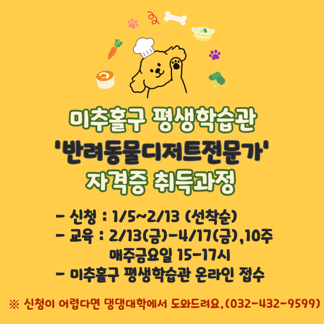 2026년 상반기 프로그램 수강생 모집 - 반려동물 디저트 전문가 양성과정 ( 교육기간 : 2/13-4/17 매주금요일)